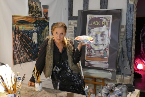 Souvent, le vendredi et le samedi, Véronique Barrillot se livre en nocturne à des live painting dans son atelier de la rue Berbisey à Dijon. La journée, du lundi au vendredi, elle y prépare ses palettes, et peint sur de grandes toiles blanches des portraits, des paysages, des trucs multicolores qui lui passent par la tête. Ne restez pas devant la vitrine, poussez la porte. La maîtresse des lieux vous expliquera le secret de ses toiles renversantes, entre illusion d’optique et trompe-l’oeil, et des fresques qu’elle plaque sur les murs de Dijon, rues du Bourg et Dauphine, et sur les façades de la capitale du streetart, New York…